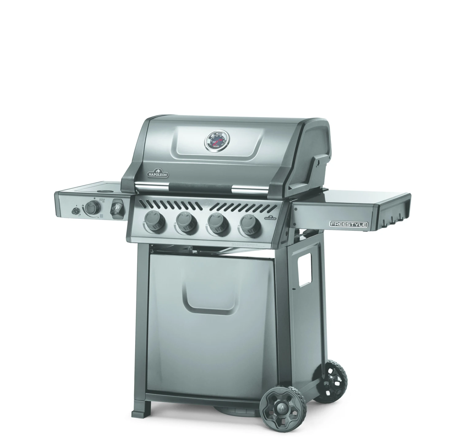 De Freestyle 425 propaangasbarbecue met SIZZLE ZONE™ infrarood zijbrander is een compacte grill met premium functies en een onklopbare prijs. Met betrouwbare JETFIRE-ontsteking waarmee de hoofdbranders probleemloos met een eigen, krachtige ontstekingsvlam worden aangestoken. Schroei het vlees perfect dicht boven de gietijzeren grillroosters met porseleincoating. Vier RVS branders bieden gelijkmatige warmte die eenvoudig geregeld kan worden en gecontroleerd met de ingebouwde thermometer. Schroei etenswaren dicht alsof het in een restaurant is gedaan of bereid zijgerechten tijdens het grillen met de infrarode zijbrander en het aanzetstation. Dankzij de robuuste wielen kan deze barbecue overal naartoe worden gereden, waar hij maar nodig is, terwijl de eenvoudig inklapbare zijtafels met gereedschapshouders en flessenopener ervoor zorgen dat de Freestyle bij uw levensstijl en ruimte past.
