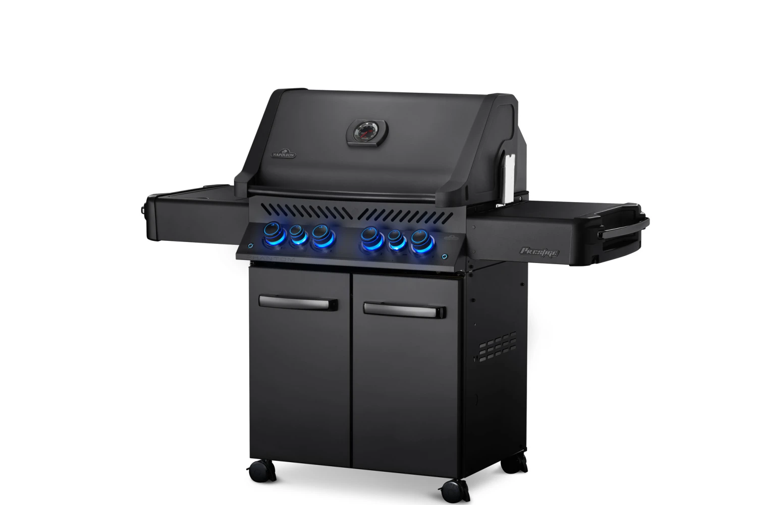 De matzwarte Phantom Prestige® 500 propaangasgrill met infrarood zij- en achterbrander biedt de volledige grillervaring. Deze gasbarbecue is volledig matzwart, van het deksel tot de vergrendelbare zwenkwielen. De stoere en aantrekkelijke Phantom heeft alles wat u voor een echte buitenkeuken nodig heeft. De vernieuwde iconische WAVE™-grillroosters van gegoten RVS en het multifunctionele grillrek zijn ideaal voor het bereiden van fantastische voorgerechten en vullen de toch al ongelooflijke Prestige® 500 gasgrill perfect aan. Met vier hoofdbranders, een achterbrander en infrarode schroeiplaat kan deze barbecue gerechten bereiden door middel van diverse unieke grilltechnieken. De RVS-warmteverdelers bieden extra oppervlak voor het verdampen van druipvet om deze luxe grill schoon te houden en opflakkeringen te voorkomen. De verlichte matzwarte knoppen zijn voorzien van SafetyGlow, waardoor het blauwe licht in de knoppen rood wordt als de branders aanstaan. De Phantom Prestige® 500 gasgrill is meer dan alleen een look. Het is een manier van leven.
