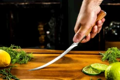 Deze prachtige snijplank is voor 100% vervaardigd uit Acaciahout. De plank is voorzien van handige anti-slip voetjes aan de onderkant, die de plank goed op zijn plek houden. In de onderkant van de plank zitten tevens 2 handgrepen verwerkt. Het snijgedeelte van de plank is omringd door een sapgeul, zodat vloeistoffen niet van de plank af lopen.